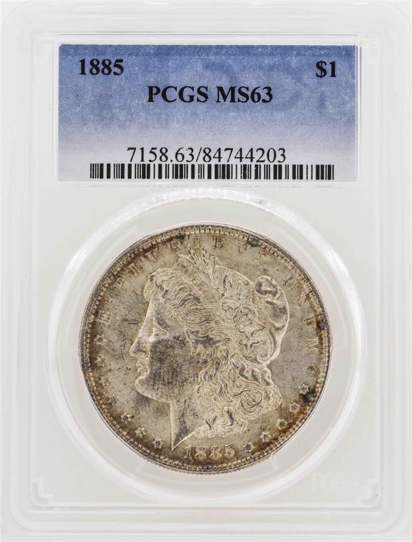 One 1885 $1 Morgan Silver Dollar Coin PCGS MS63. PCGS Graded.