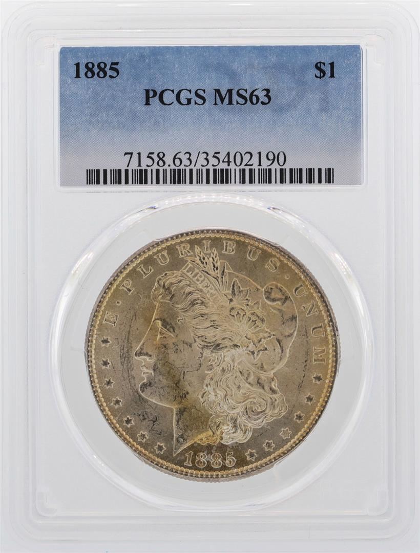 One 1885 $1 Morgan Silver Dollar Coin PCGS MS63. PCGS Graded.