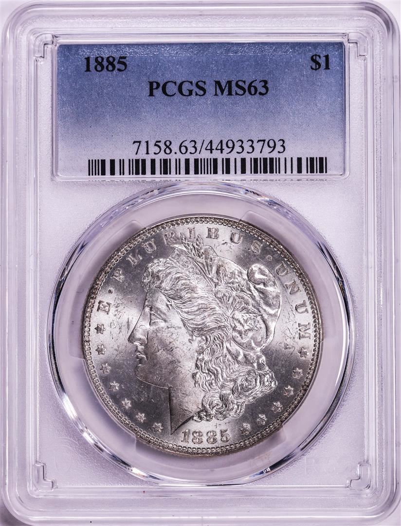 One 1885 $1 Morgan Silver Dollar Coin PCGS MS63. PCGS Graded.