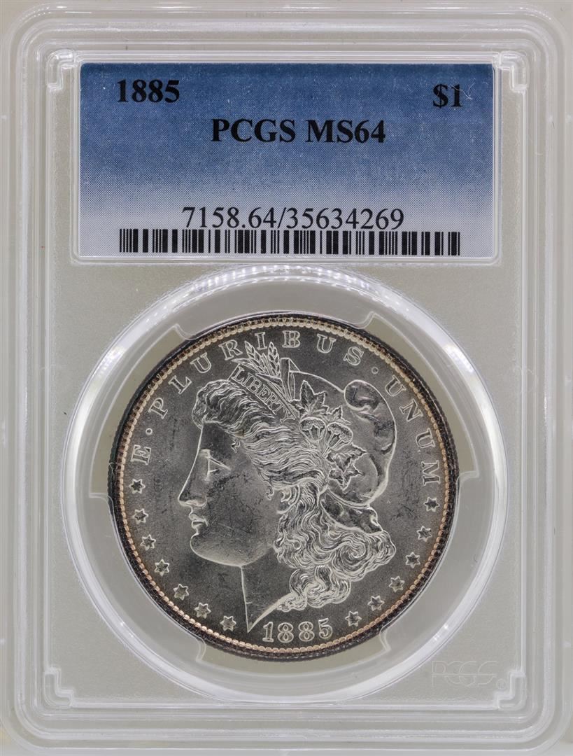 One 1885 $1 Morgan Silver Dollar Coin PCGS MS64. PCGS Graded.