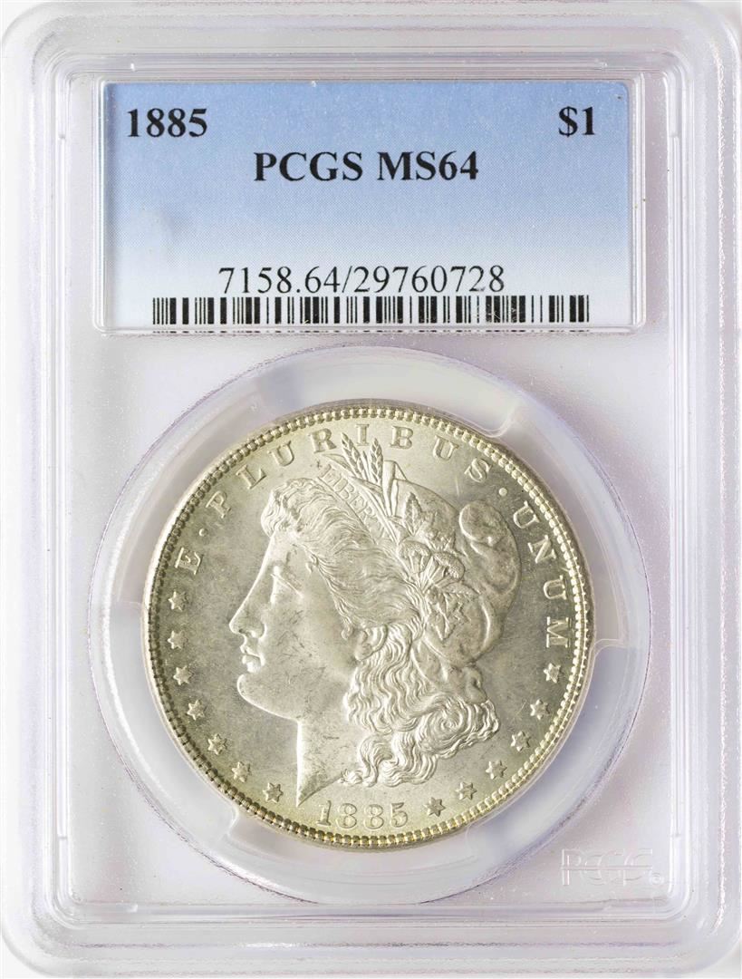 One 1885 $1 Morgan Silver Dollar Coin PCGS MS64. PCGS Graded.