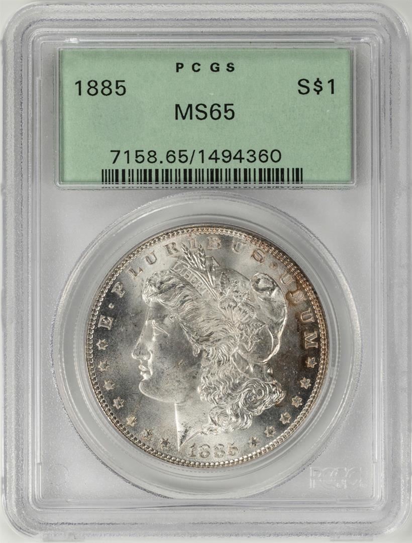 1885 $1 Morgan Silver Dollar Coin PCGS MS65 Old Green Holder
