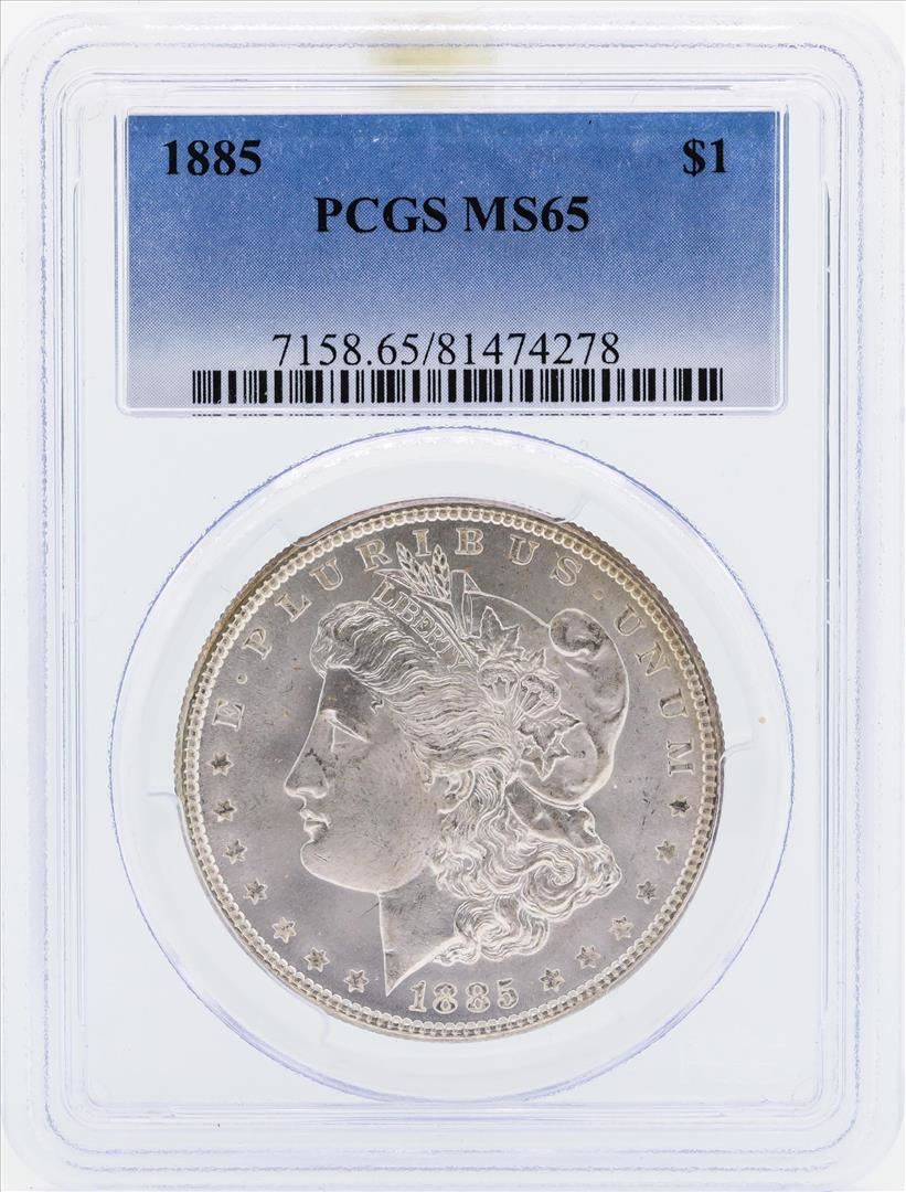 One 1885 $1 Morgan Silver Dollar Coin PCGS MS65. PCGS Graded.