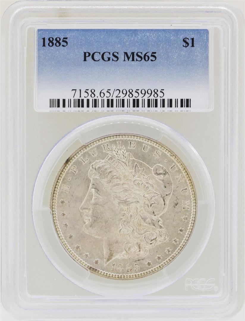 One 1885 $1 Morgan Silver Dollar Coin PCGS MS65. PCGS Graded.