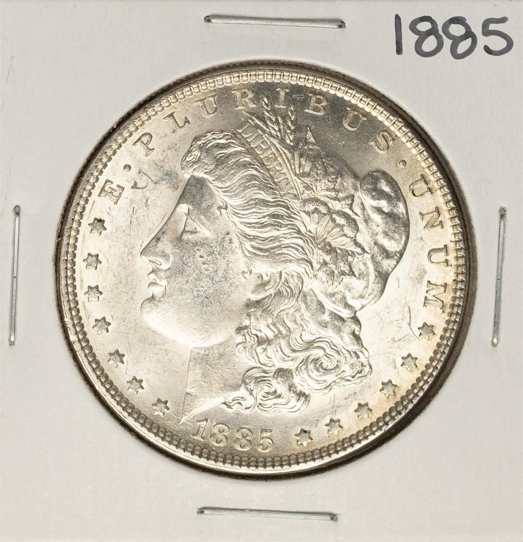 One 1885 $1 Morgan Silver Dollar Coin.