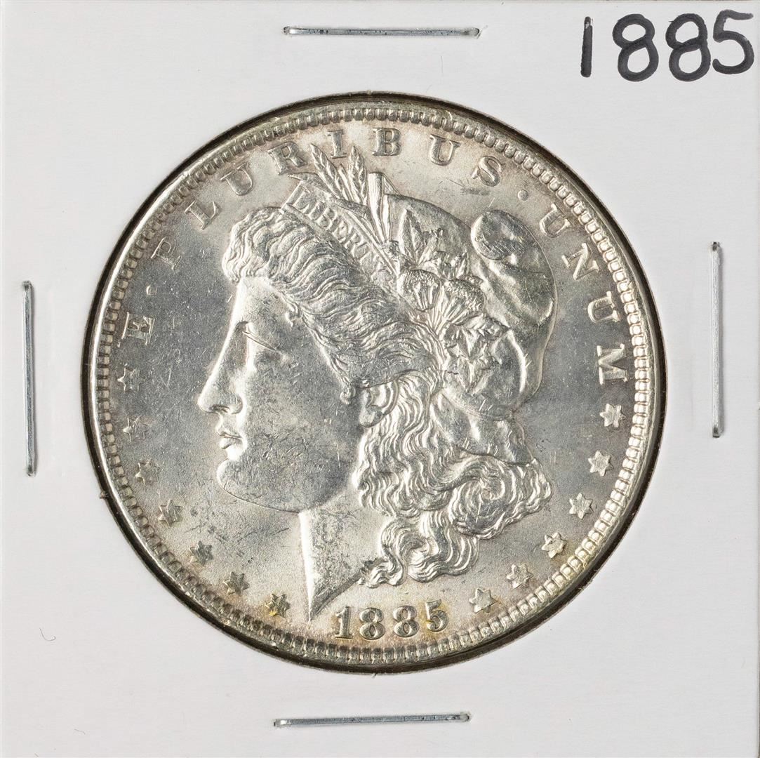 One 1885 $1 Morgan Silver Dollar Coin.