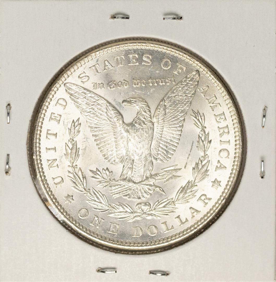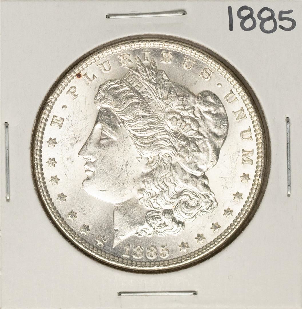 One 1885 $1 Morgan Silver Dollar Coin.