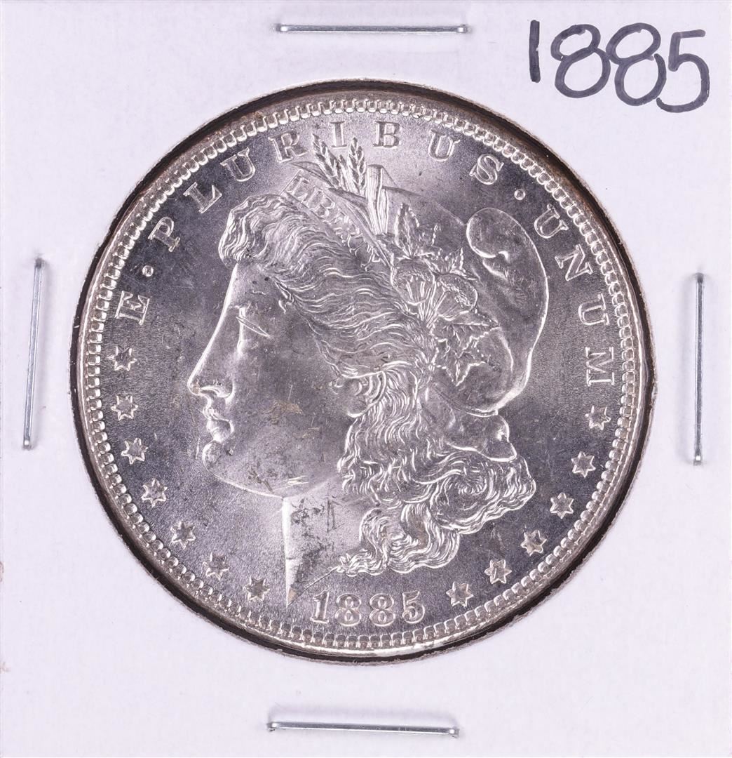 One 1885 $1 Morgan Silver Dollar Coin.