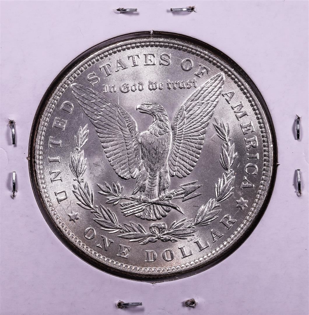 One 1885 $1 Morgan Silver Dollar Coin.