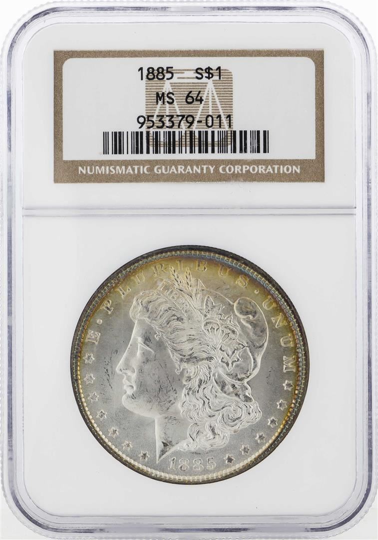 1885 $1 Morgan Silver Dollar NGC MS64 Great Toning