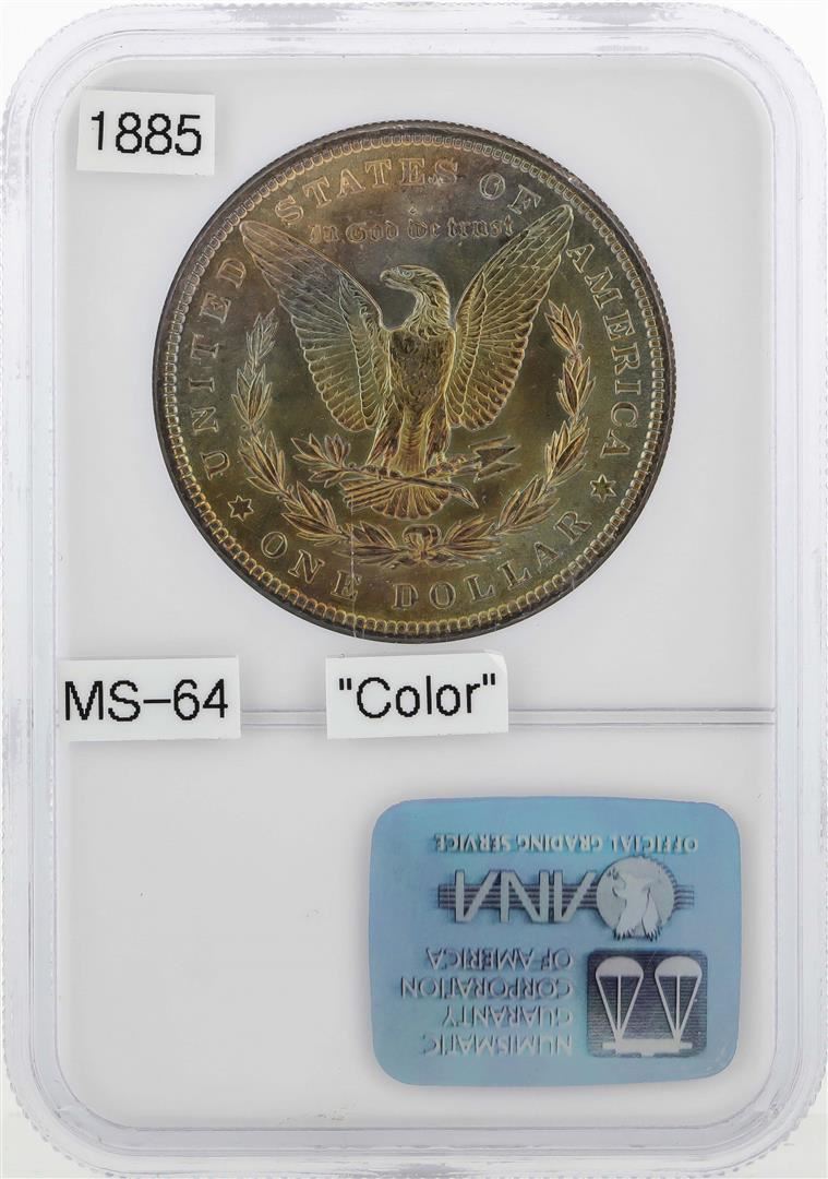 One 1885 $1 Morgan Silver Dollar NGC MS64 Great Toning. NGC Certified.
