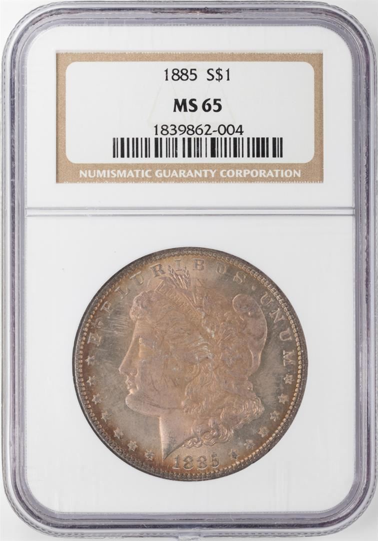 One 1885 $1 Morgan Silver Dollar NGC MS65 Nice Toning. NGC Certified.
