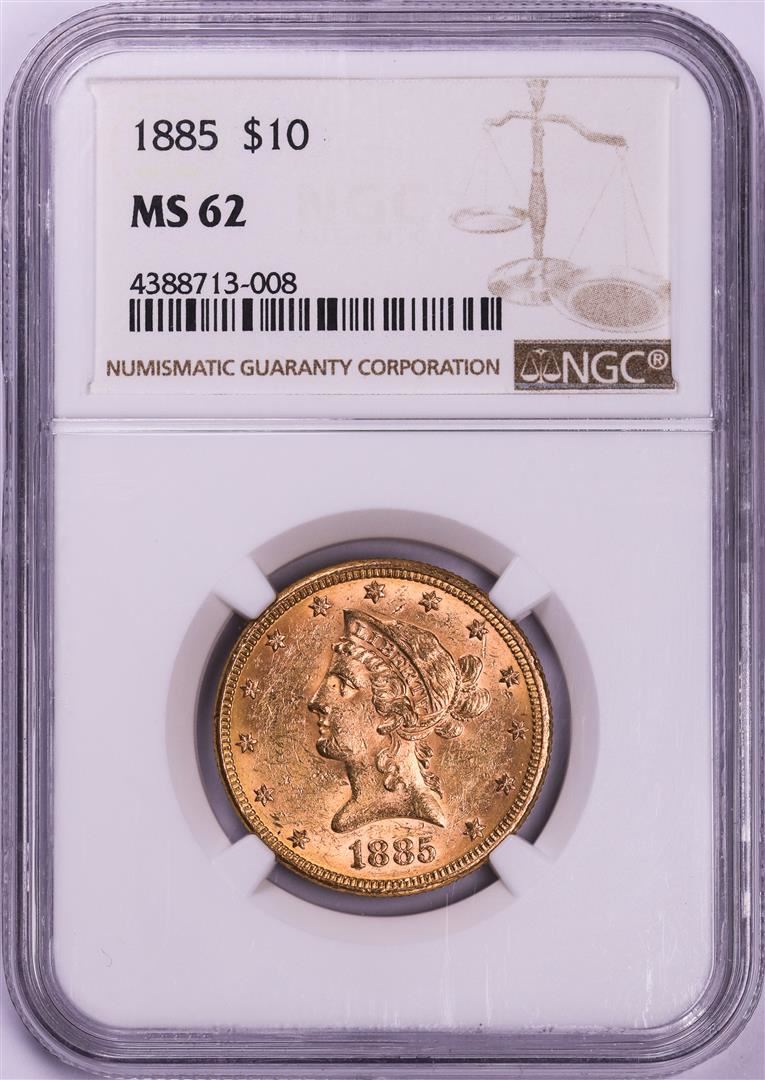 One 1885 $10 Liberty Head Eagle Gold Coin NGC MS62.