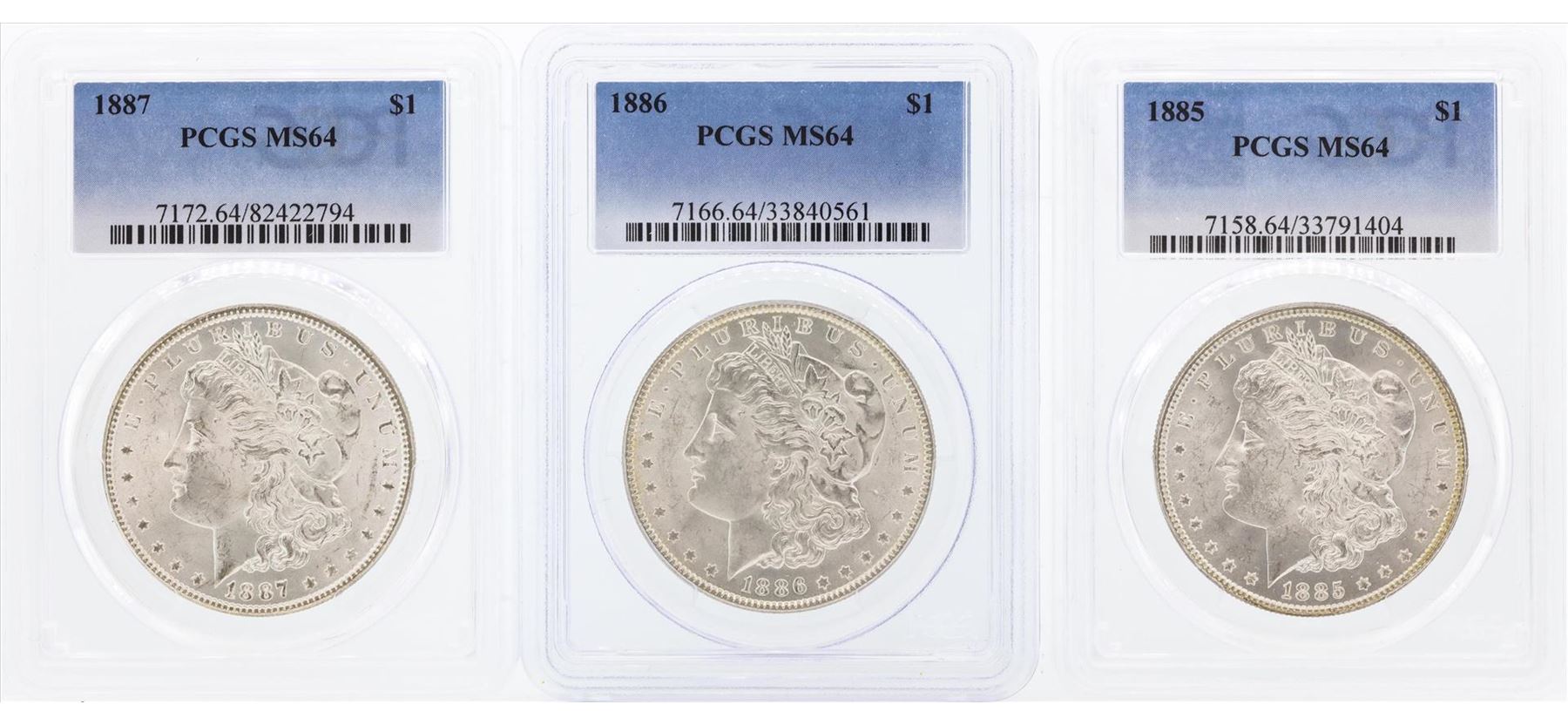 One 1885-1887 $1 Morgan Silver Dollar Coins PCGS MS64. PCGS Graded.
