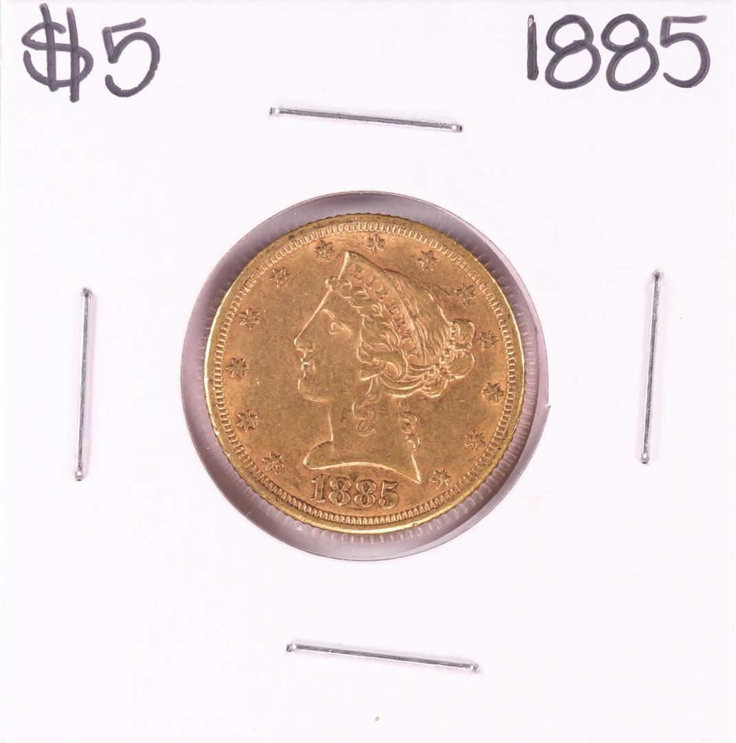 One 1885 $5 Liberty Head Half Eagle Gold Coin.