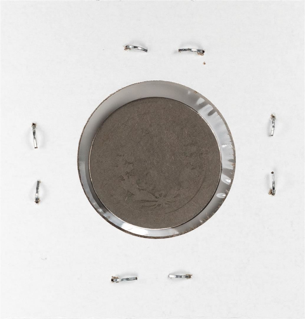 Bidders are advised that certain types of plastic may react with a coin's metal or transfer plasticizer to notes and may cause damage. Caution should be used to avoid storage in materials that are not inert.