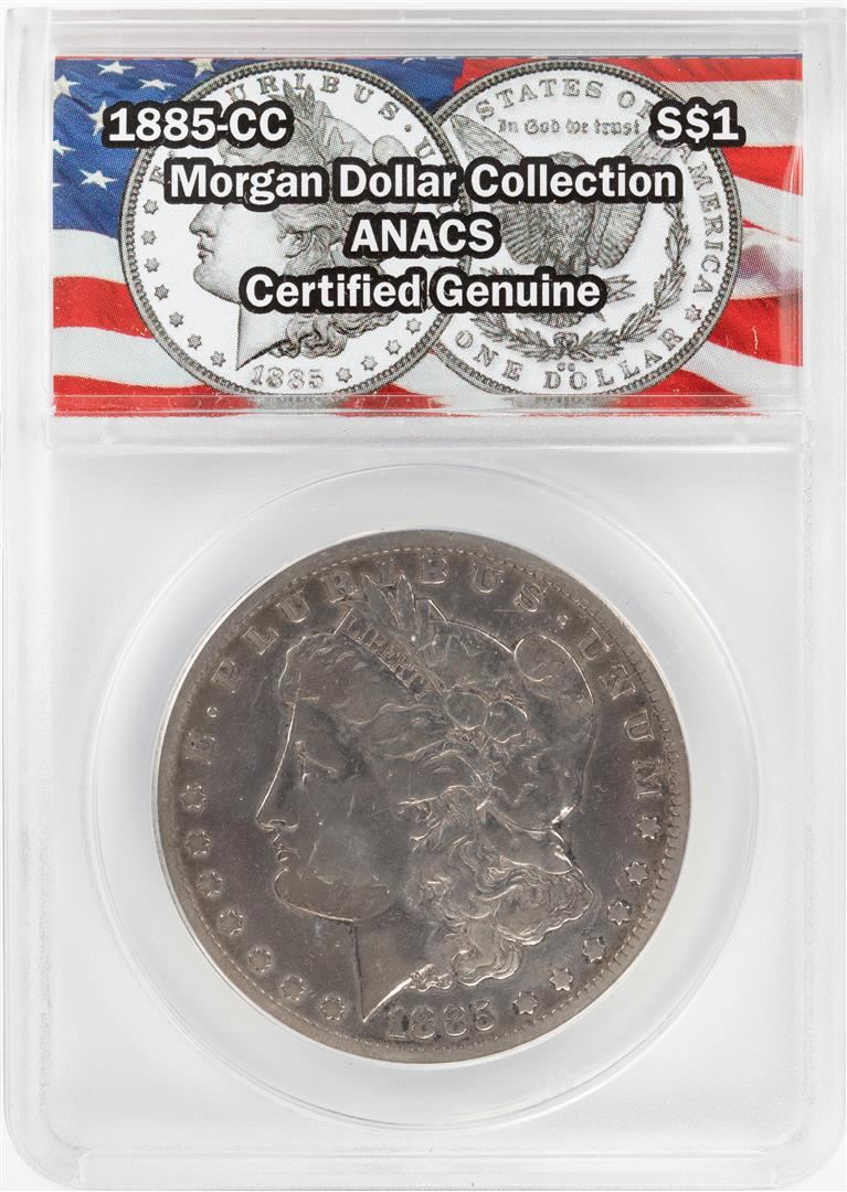 One 1885-CC $1 Morgan Silver Dollar Coin ANACS Certified Genuine. ANACS Certified.