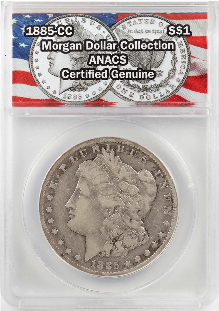 One 1885-CC $1 Morgan Silver Dollar Coin ANACS Certified Genuine. ANACS Certified.