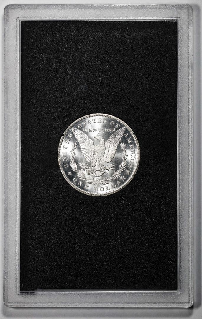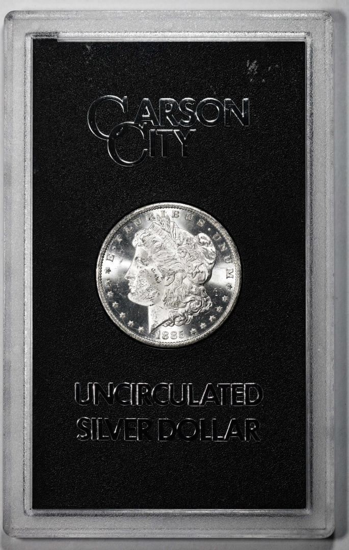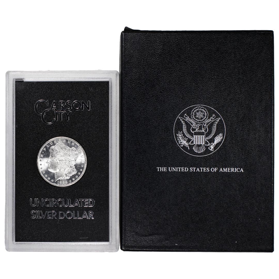 One 1885-CC $1 Morgan Silver Dollar Coin GSA Hoard Uncirculated w/Box.