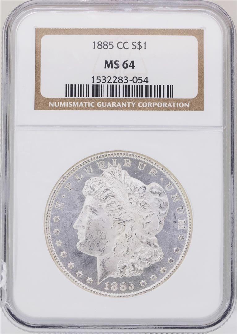 One 1885-CC $1 Morgan Silver Dollar Coin NGC MS64. NGC Certified.