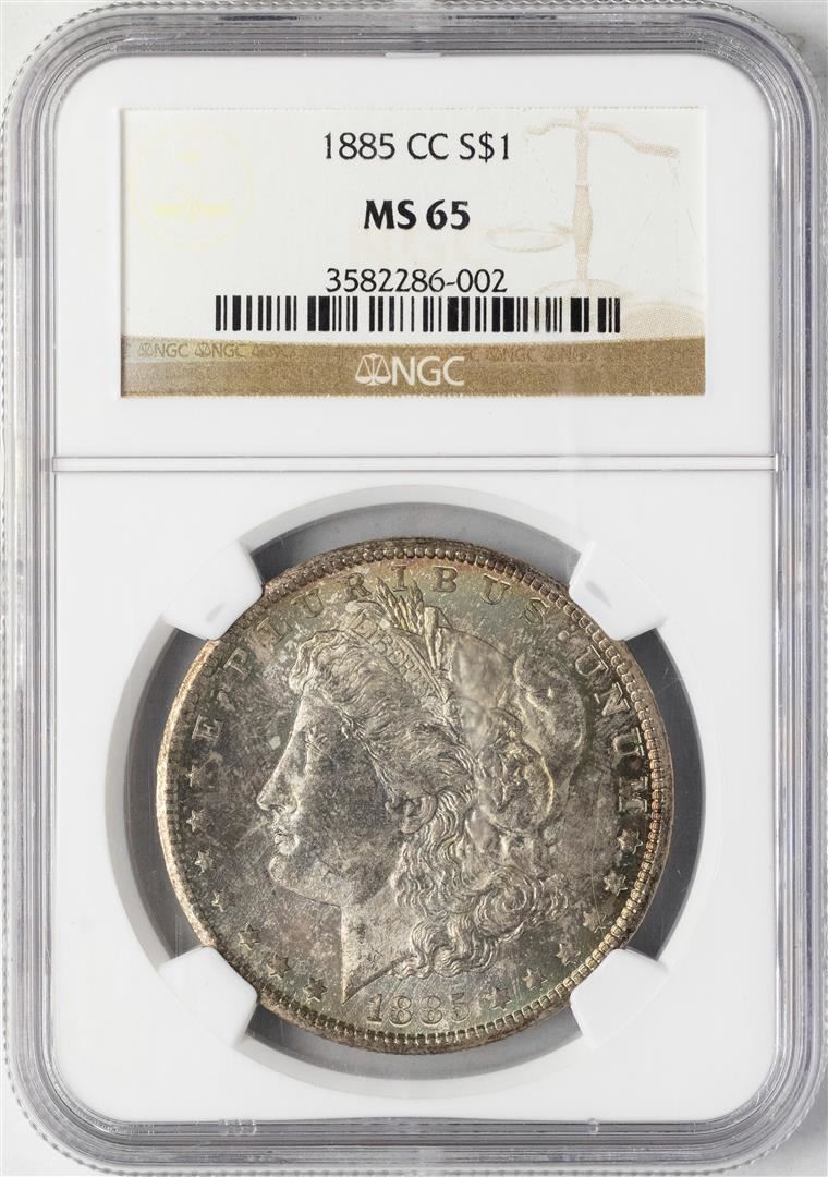 1885-CC $1 Morgan Silver Dollar Coin NGC MS65 Nice Reverse Toning