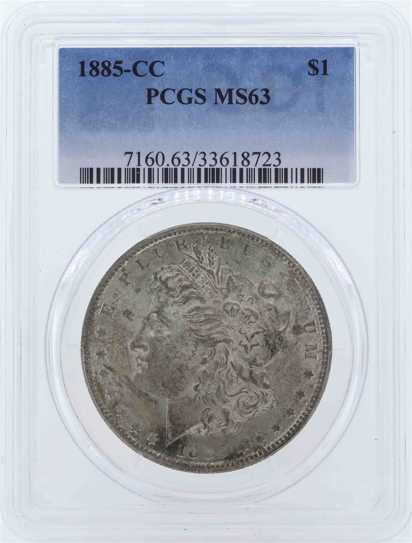 One 1885-CC $1 Morgan Silver Dollar Coin PCGS MS63. PCGS Graded.
