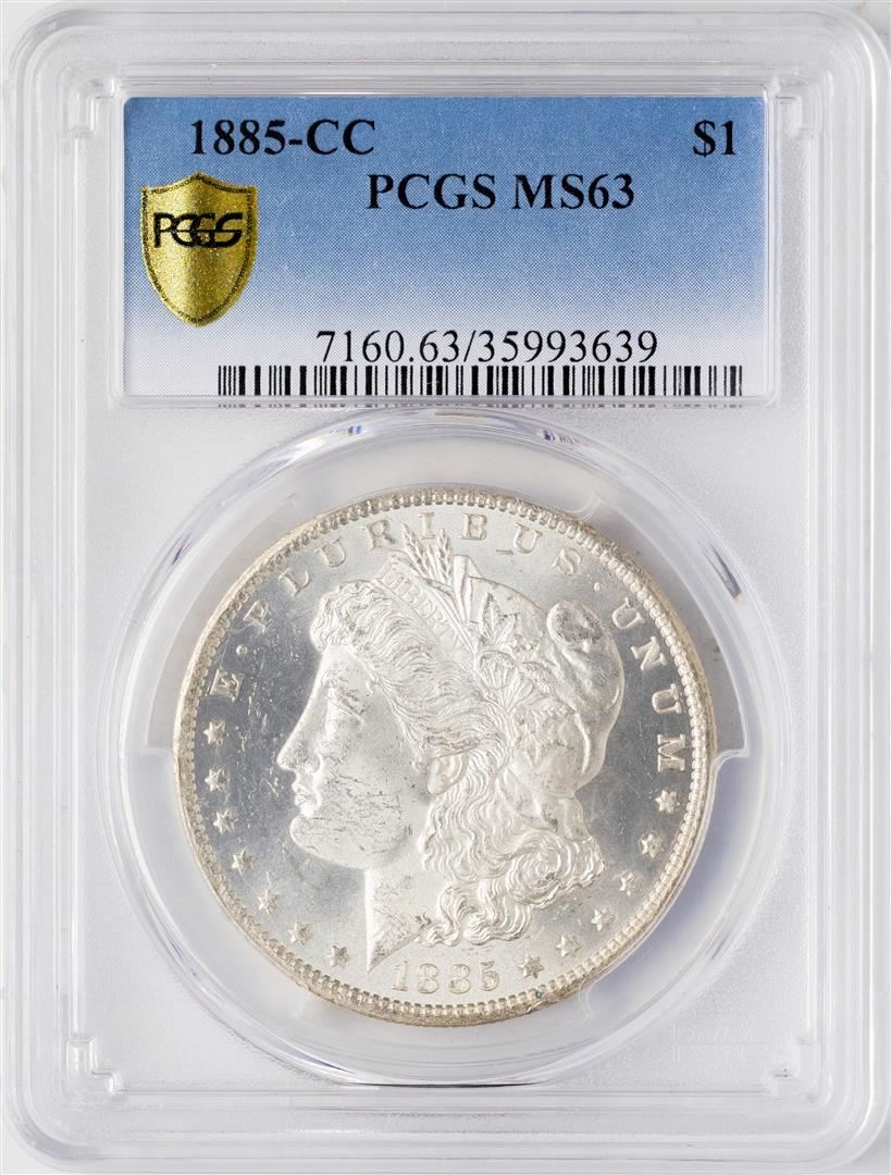 One 1885-CC $1 Morgan Silver Dollar Coin PCGS MS63. PCGS Graded.
