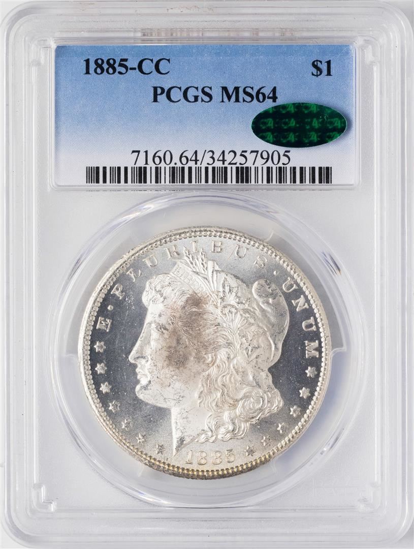 One 1885-CC $1 Morgan Silver Dollar Coin PCGS MS64 CAC. PCGS Graded.