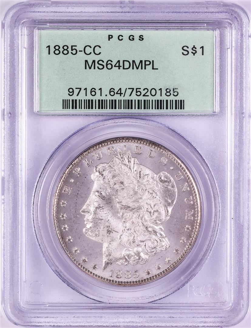 One 1885-CC $1 Morgan Silver Dollar Coin PCGS MS64DMPL Old Green Holder. PCGS Graded.