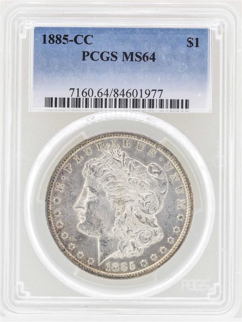 One 1885-CC $1 Morgan Silver Dollar Coin PCGS MS64. PCGS Graded.