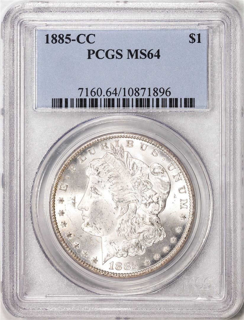 One 1885-CC $1 Morgan Silver Dollar Coin PCGS MS64. PCGS Graded.