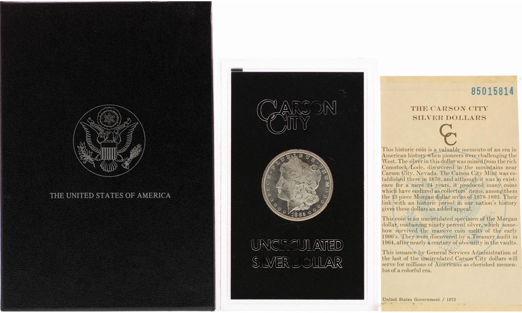 One 1885-CC $1 Morgan Silver Dollar Coin Uncirculated GSA Hoard w/ Box & COA.