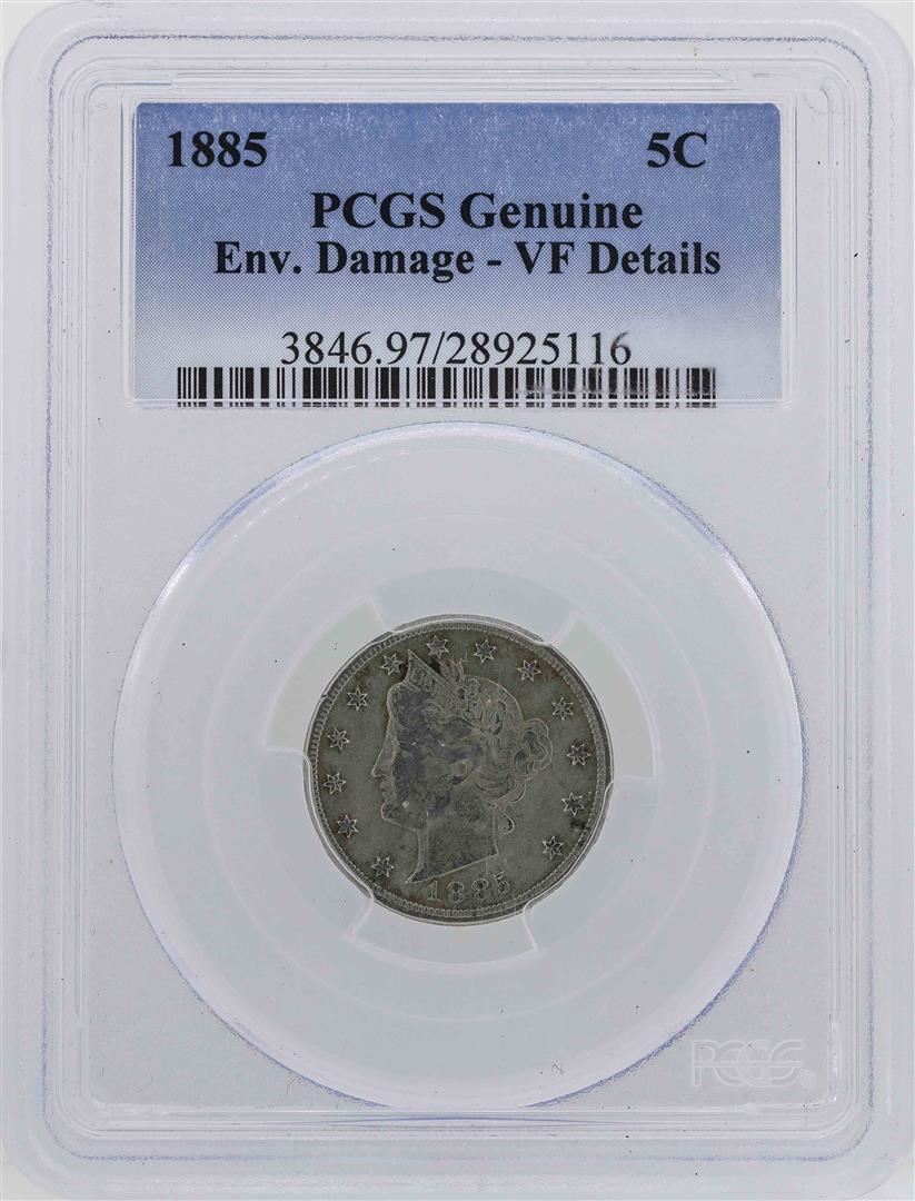 One 1885 Liberty V Nickel Coin PCGS Genuine VF Details. PCGS Graded.