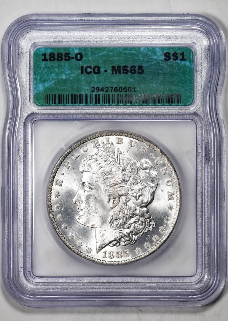 One 1885-O $1 Morgan Silver Dollar Coin ICG MS65. ICG Certified.