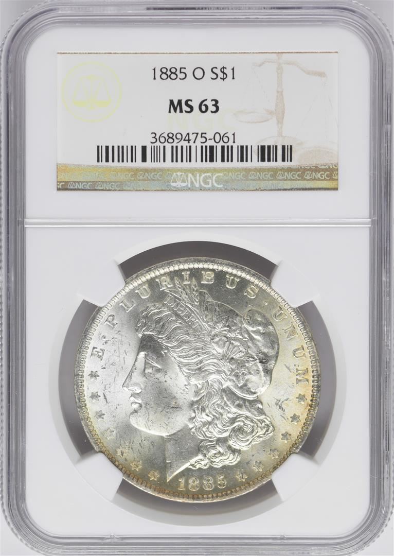 One 1885-O $1 Morgan Silver Dollar Coin NGC MS63 Nice Toning. NGC Certified.