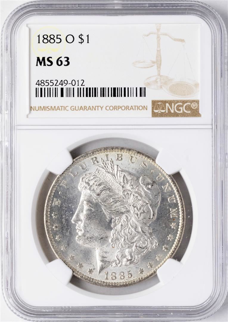 One 1885-O $1 Morgan Silver Dollar Coin NGC MS63. NGC Certified.