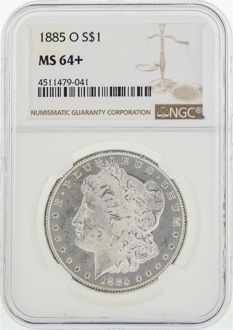 One 1885-O $1 Morgan Silver Dollar Coin NGC MS64+. NGC Certified.