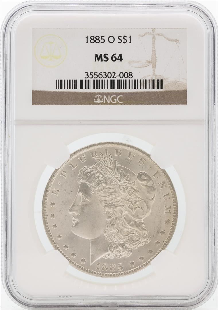One 1885-O $1 Morgan Silver Dollar Coin NGC MS64. NGC Certified.