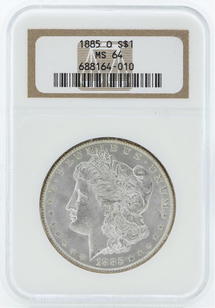 One 1885-O $1 Morgan Silver Dollar Coin NGC MS64. NGC Certified.