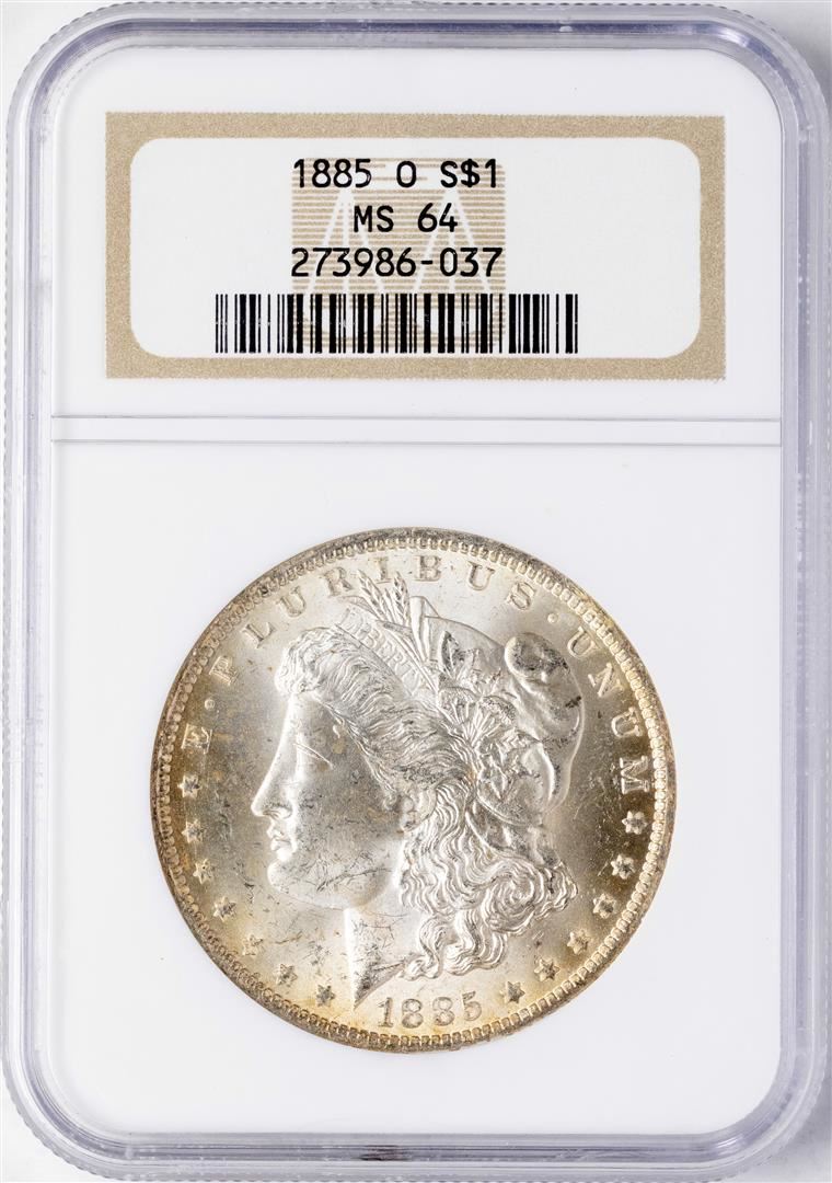 One 1885-O $1 Morgan Silver Dollar Coin NGC MS64. NGC Certified.