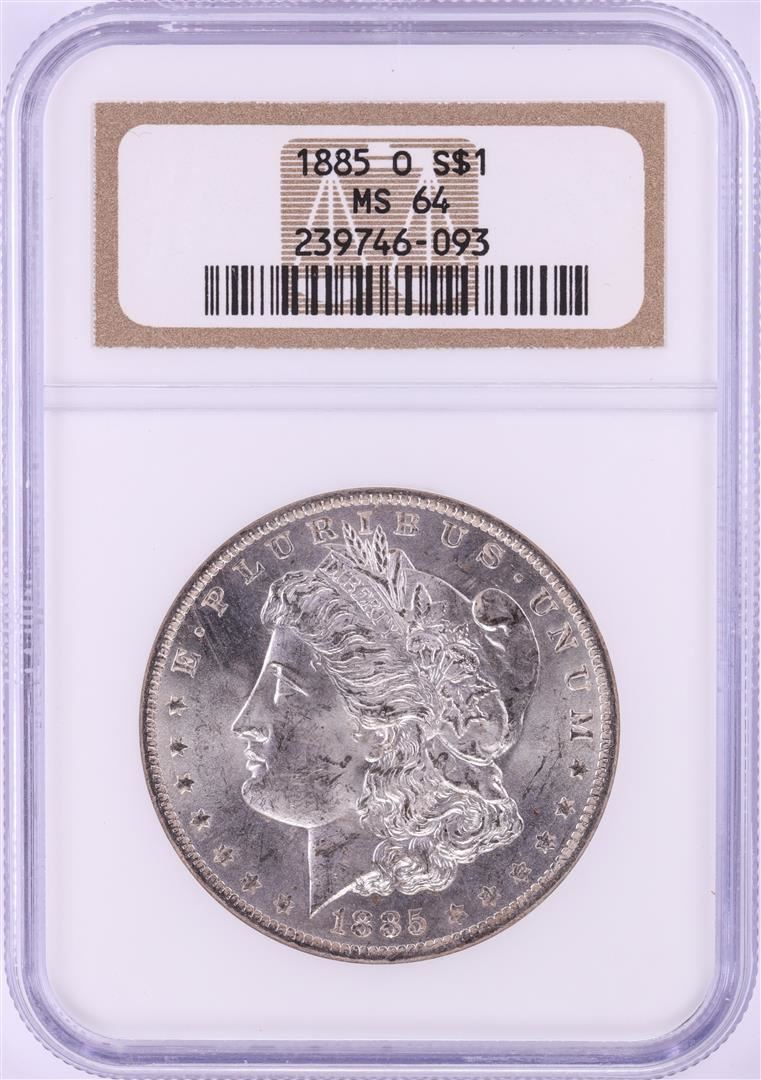One 1885-O $1 Morgan Silver Dollar Coin NGC MS64. NGC Certified.