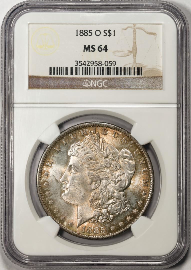 One 1885-O $1 Morgan Silver Dollar Coin NGC MS64. NGC Certified.