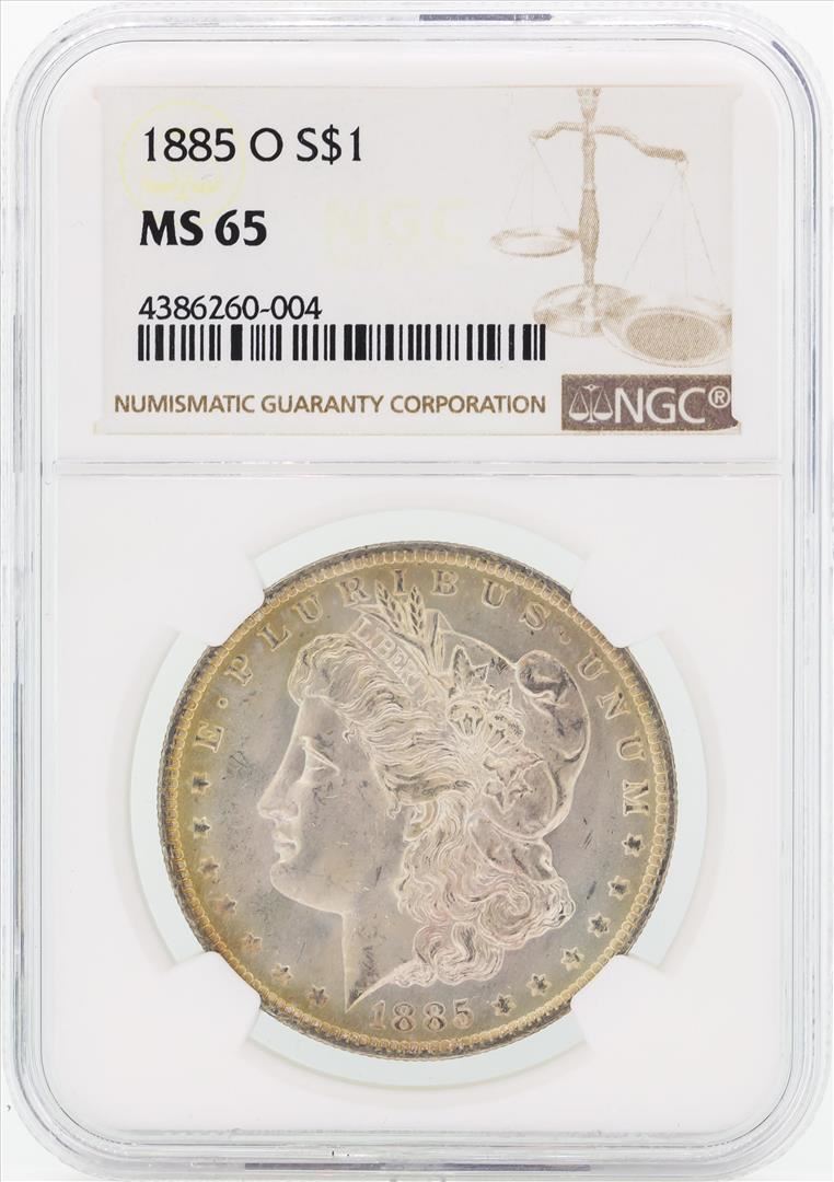 One 1885-O $1 Morgan Silver Dollar Coin NGC MS65. NGC Certified.
