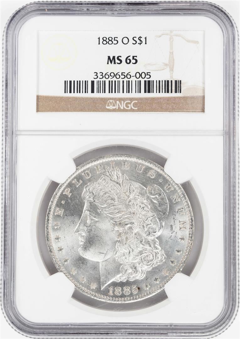One 1885-O $1 Morgan Silver Dollar Coin NGC MS65. NGC Certified.
