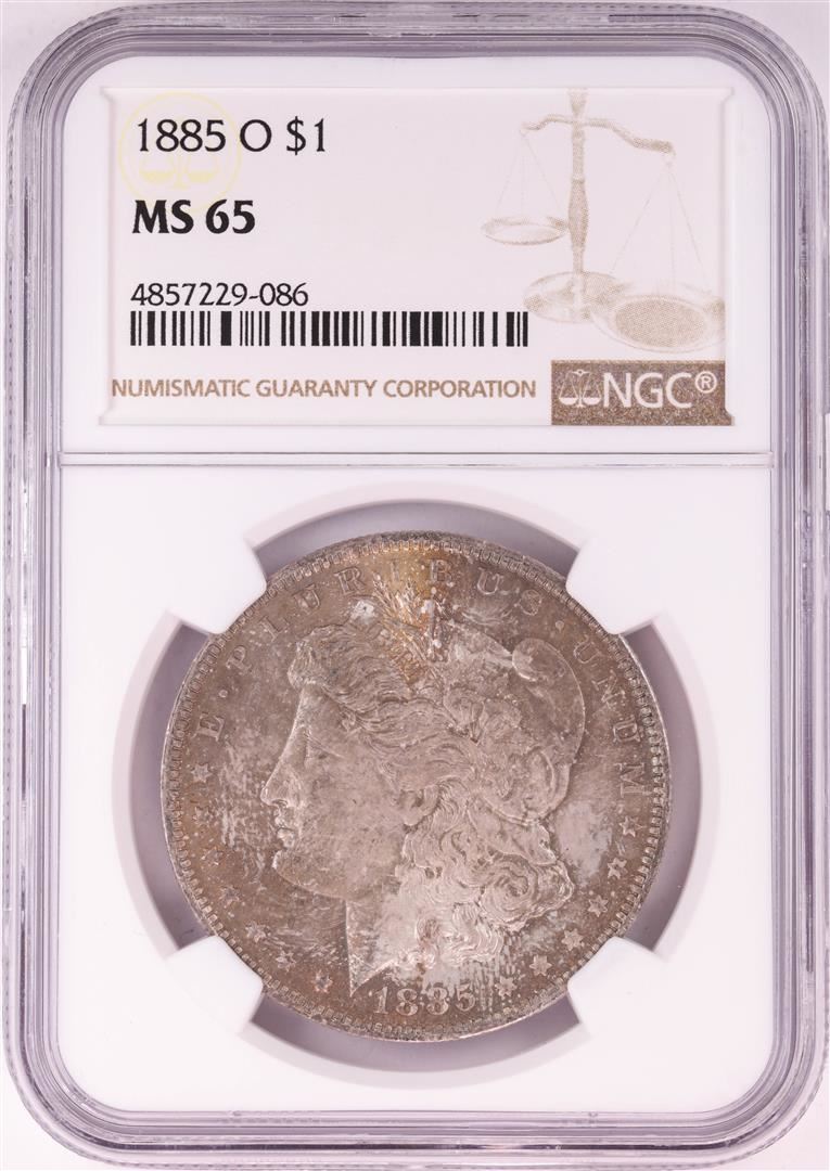One 1885-O $1 Morgan Silver Dollar Coin NGC MS65. NGC Certified.