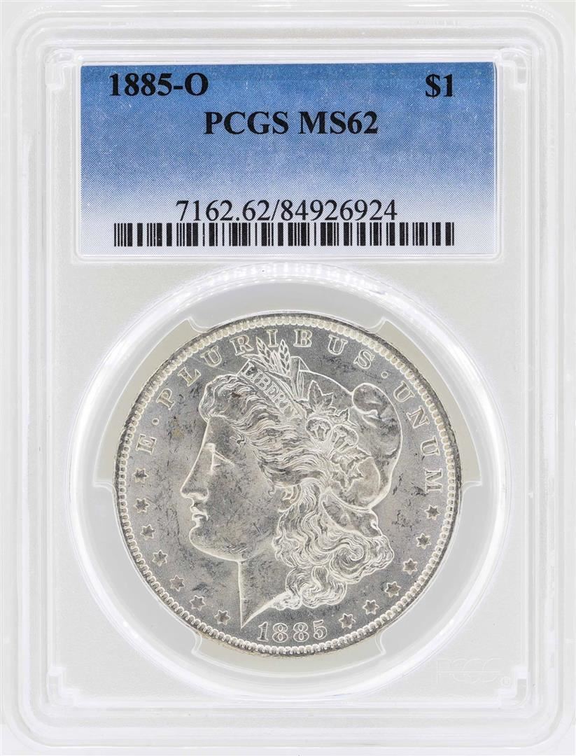 One 1885-O $1 Morgan Silver Dollar Coin PCGS MS62. PCGS Graded.