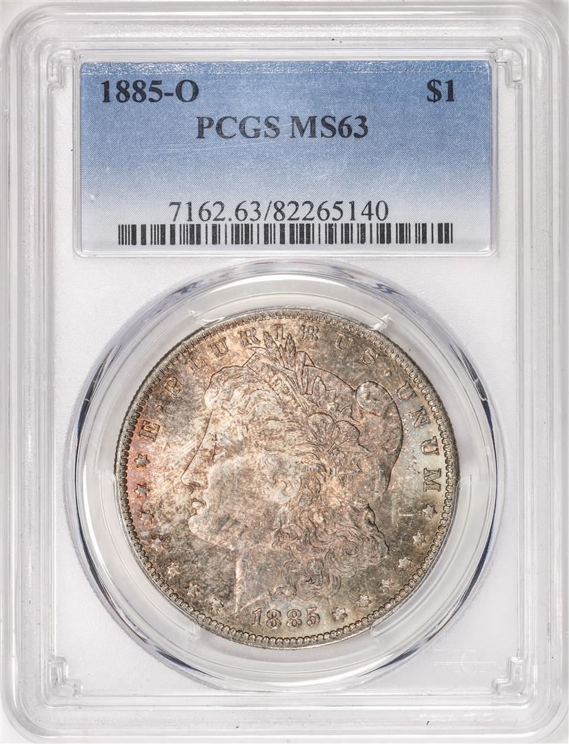 One 1885-O $1 Morgan Silver Dollar Coin PCGS MS63 Nice Toning. PCGS Graded.