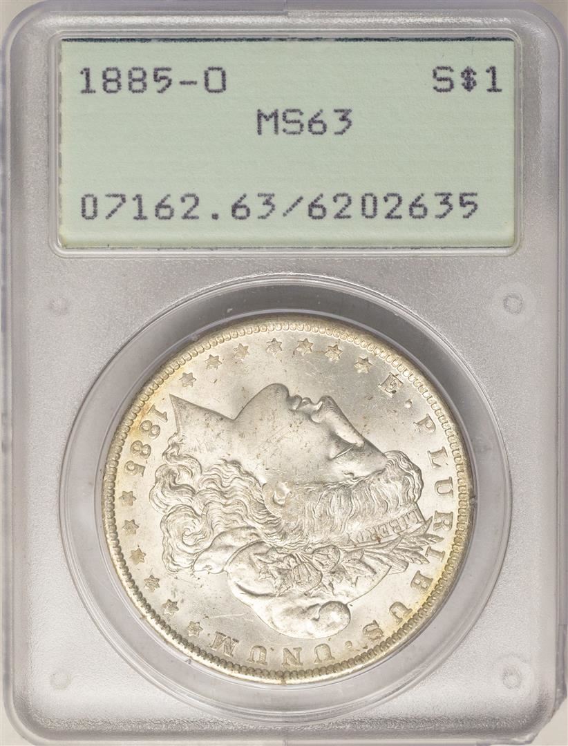 1885-O $1 Morgan Silver Dollar Coin PCGS MS63 Old Green Rattler Holder