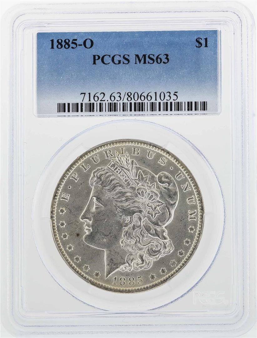 One 1885-O $1 Morgan Silver Dollar Coin PCGS MS63. PCGS Graded.