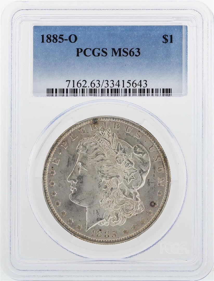 One 1885-O $1 Morgan Silver Dollar Coin PCGS MS63. PCGS Graded.